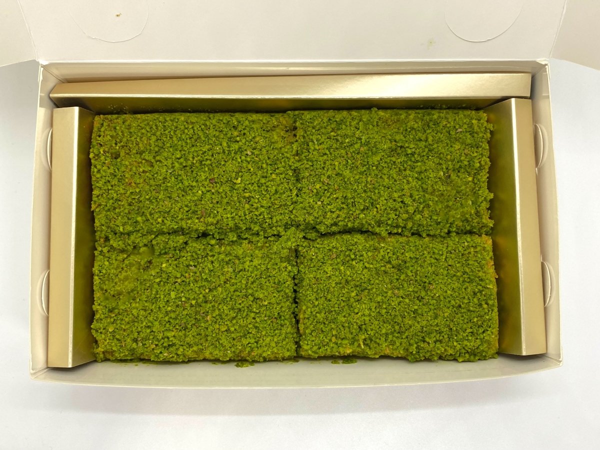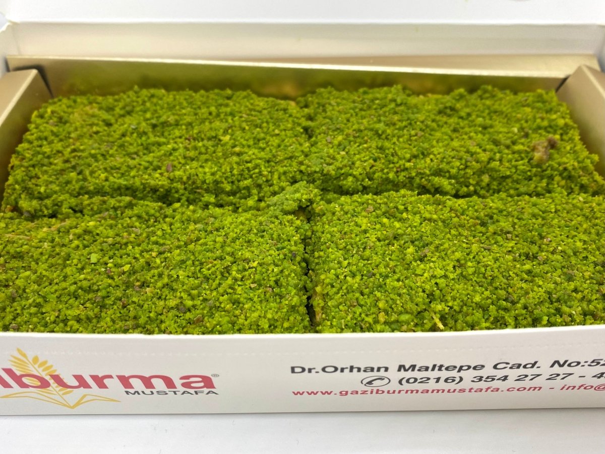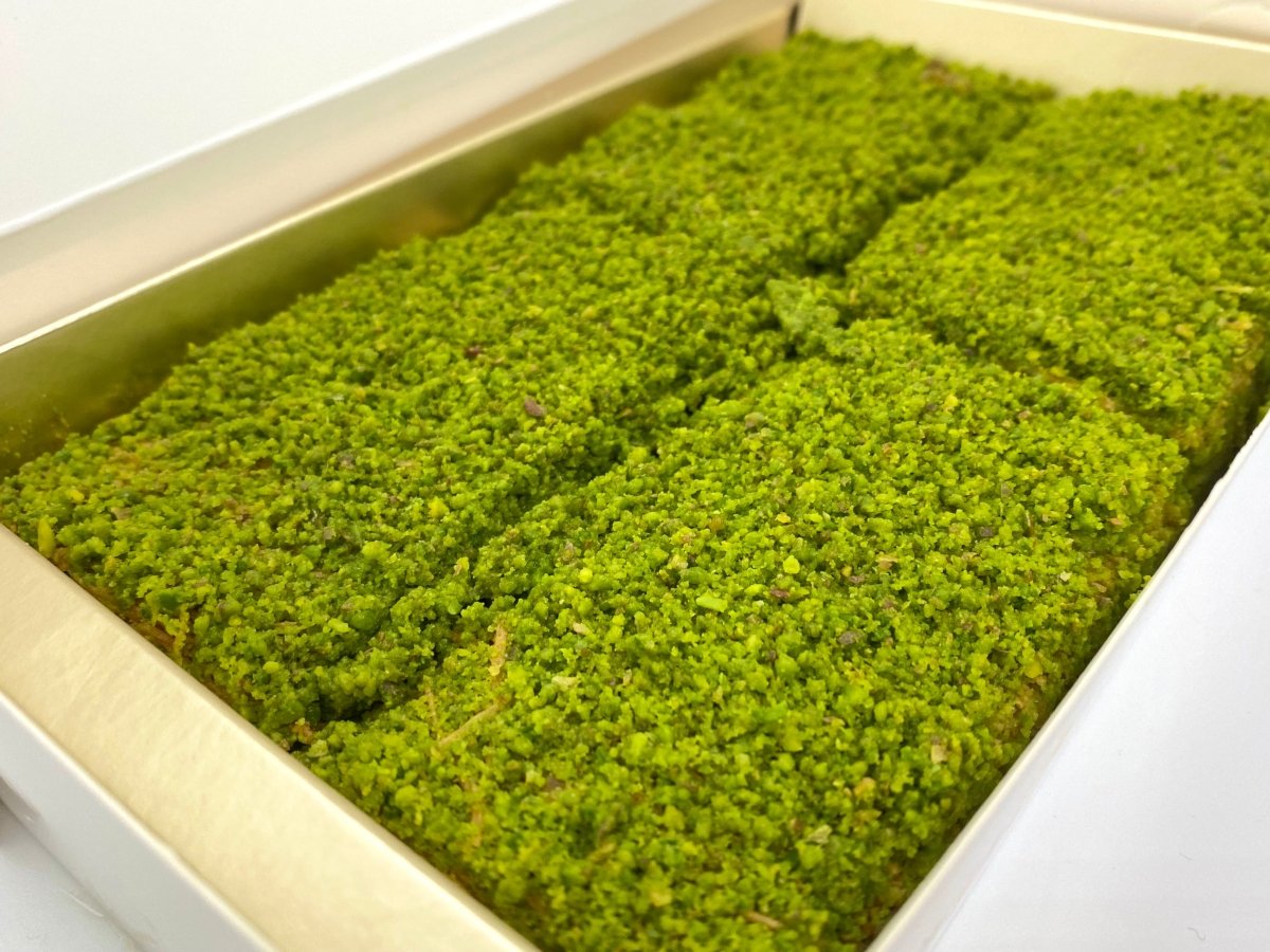 Billuria Kadayif is a flavor that's unique to Gaziburma Mustafa. It is a classic kadayif baklava made with sweet syrup and covered in a heavy amount of finely minced Turkish pistachios, to create a one of a kind flavor.