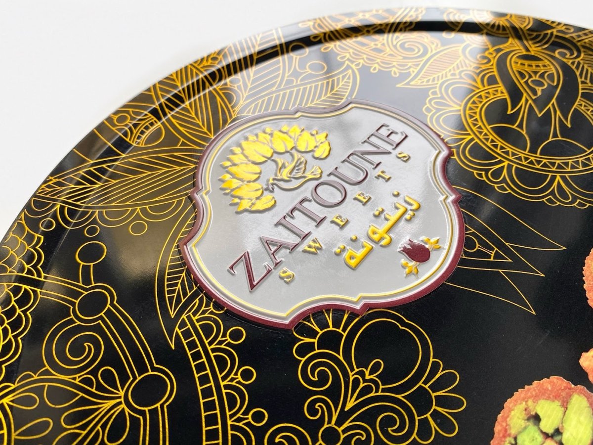 The Aleppo Kadayif with Pistachio is made of shredded phyllo pastry dough and whole pistachio pieces, creating a delicious kadayif baklava. Packed with a cover made of metal supported by a nylon cover, to ensure the protection of the product from external factors such as moisture and to preserve its quality and taste.