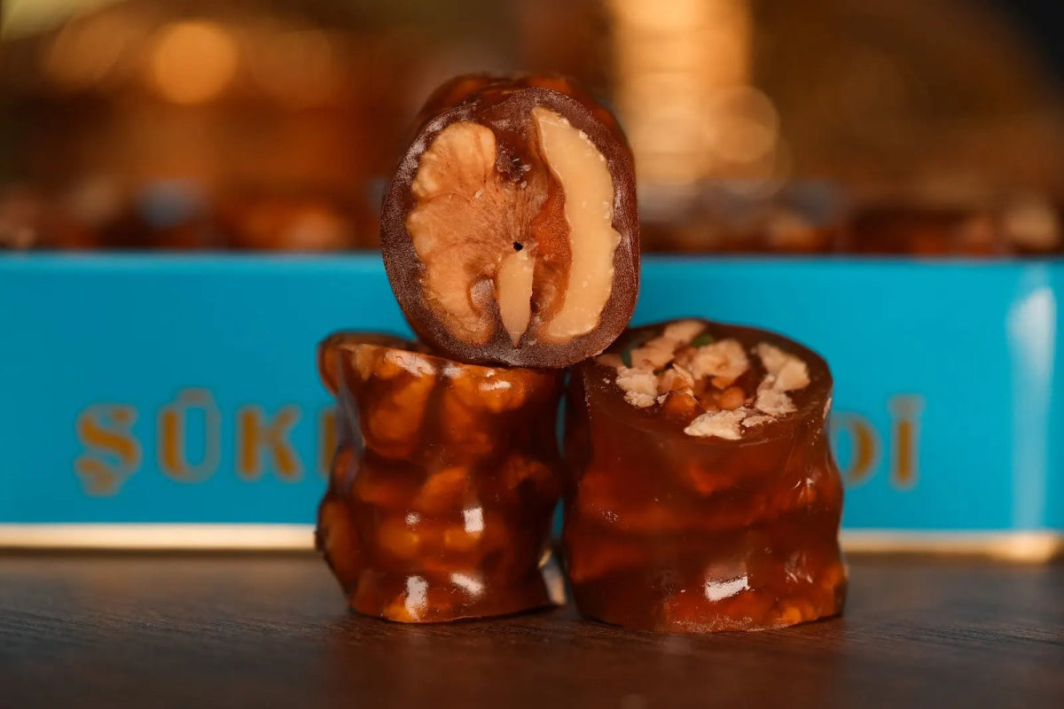 Inizia un viaggio culinario con Sukru Efendi 1935's Turkish Churchkhela al Gusto di Uva Gialla con Noci, una delizia che racchiude la nostra dedizione all'eccellenza culinaria. Realizzato con precisione e passione, questo dolce è un must per i buongustai dei dessert raffinati. Ecco perché il nostro Turkish Churchkhela si distingue come un'indulgenza irresistibile: