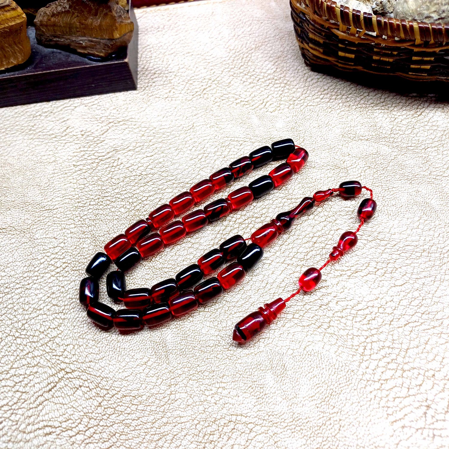 Scopri il fascino del Selderesi | Darabci Design Fire Amber Tasbih, un affascinante accessorio per la preghiera meticolosamente realizzato con splendidi grani di ambra fuoco e pressata. Ogni grano, di dimensioni 7,5 * 10,5 mm, offre una presa comoda per un uso regolare.