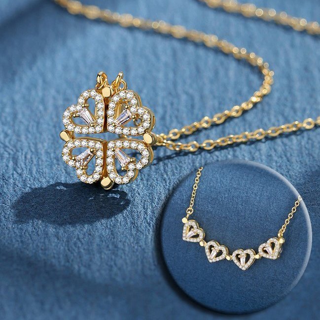 - Il pendente unico si trasforma da un quadrifoglio a quattro cuori scintillanti.