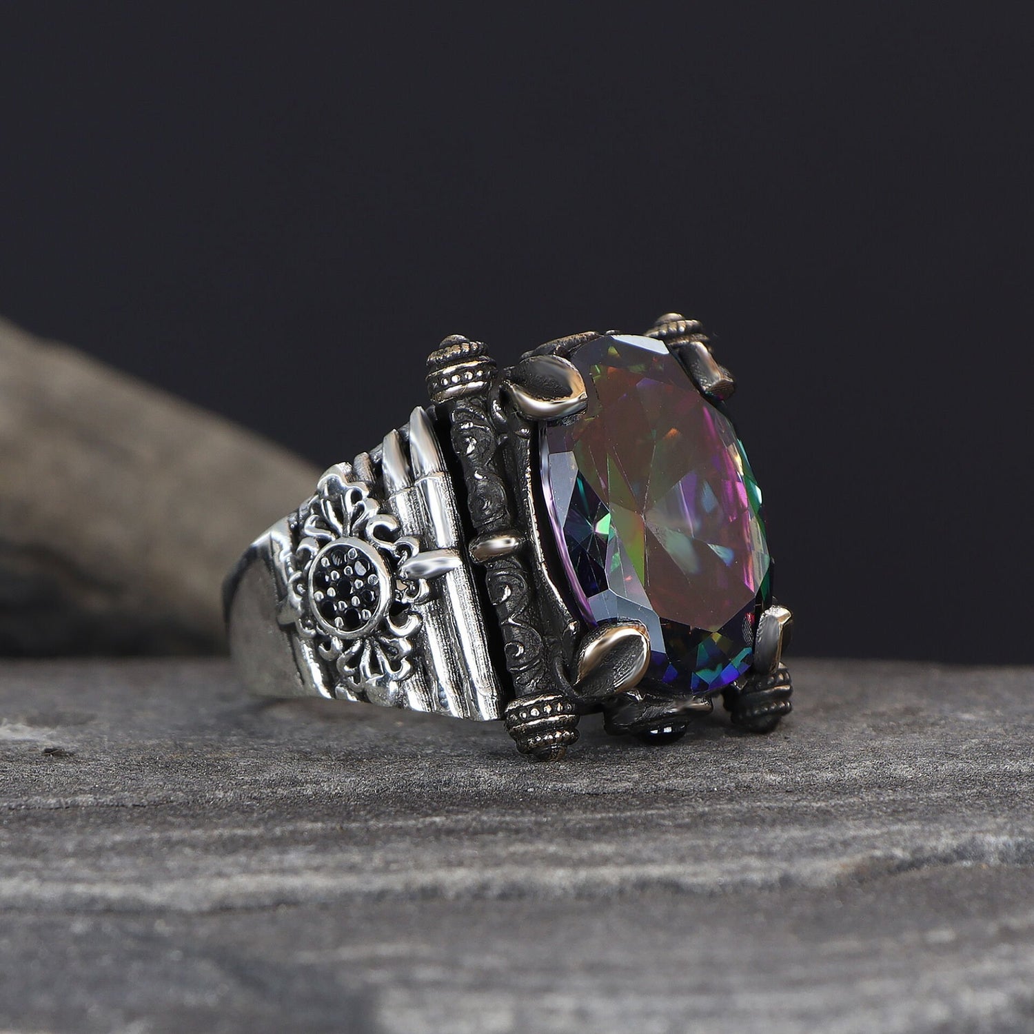 Eleva il tuo look con l'anello da uomo in argento con pietra di topazio mistico
