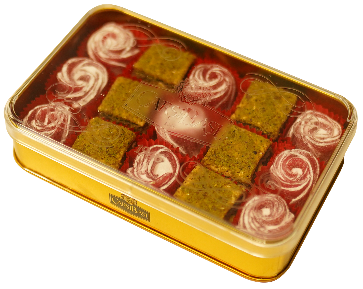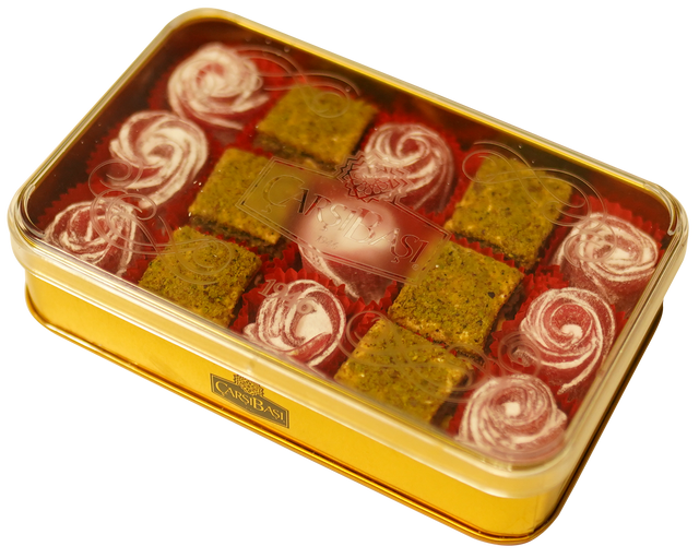 Offer a timeless gift of Turkish tradition with the Carsibasi Premium Assorted Delight. This elegant 310g gold-accented tin box contains 15 exquisite pieces, making it a perfect, high-demand B2B item for gourmet gift shops, boutiques, and specialty retailers.