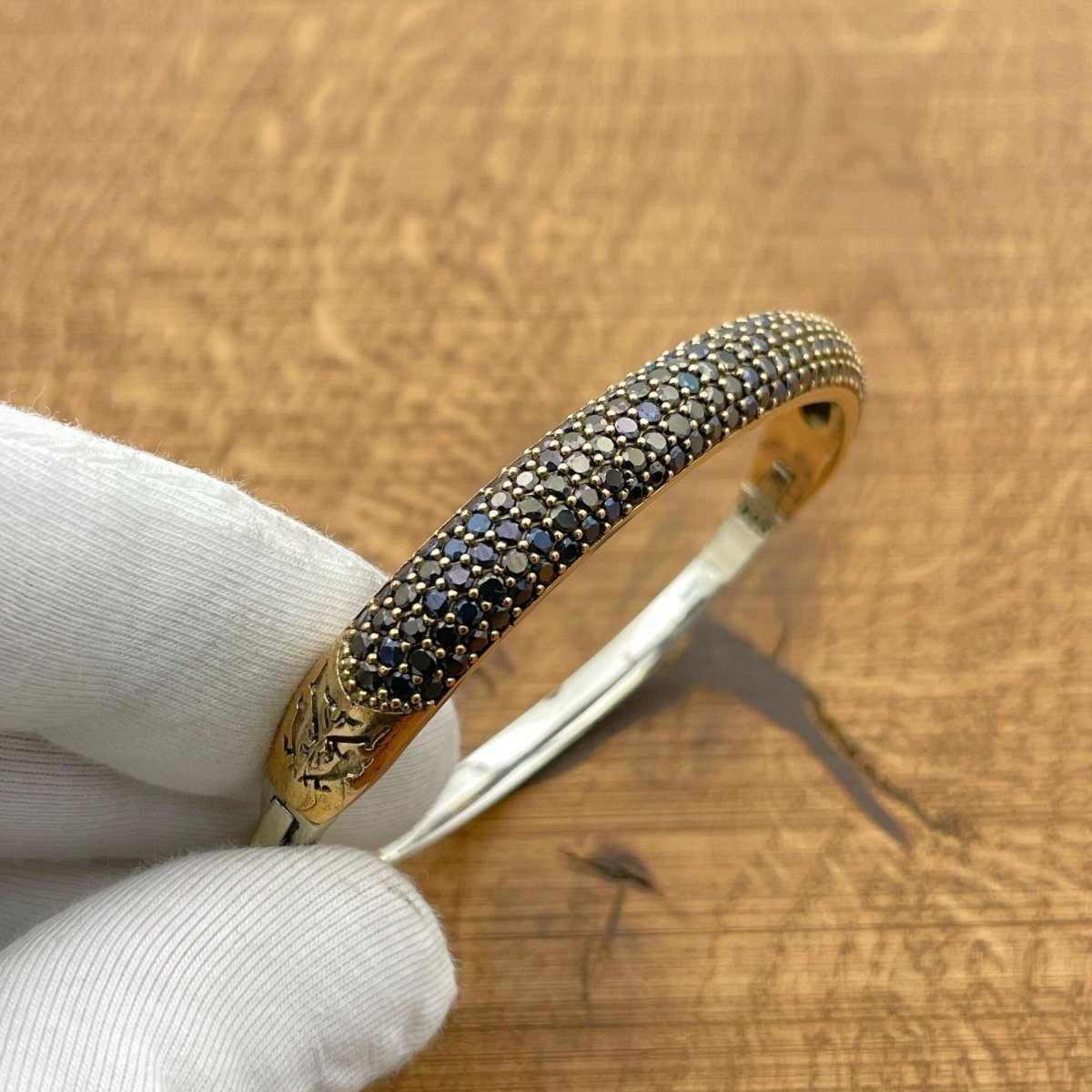 Handmade 925 Sterling Silver JewelryThis elegant black onyx bangle bracelet is crafted with 925 sterling silver, making it a perfect gift for her.